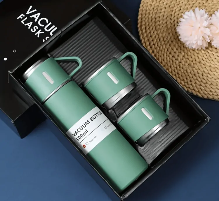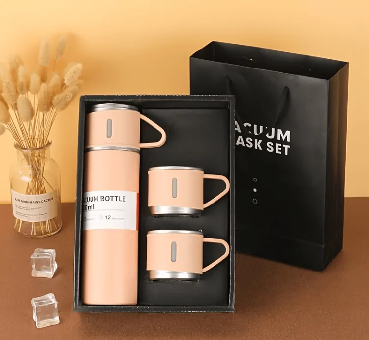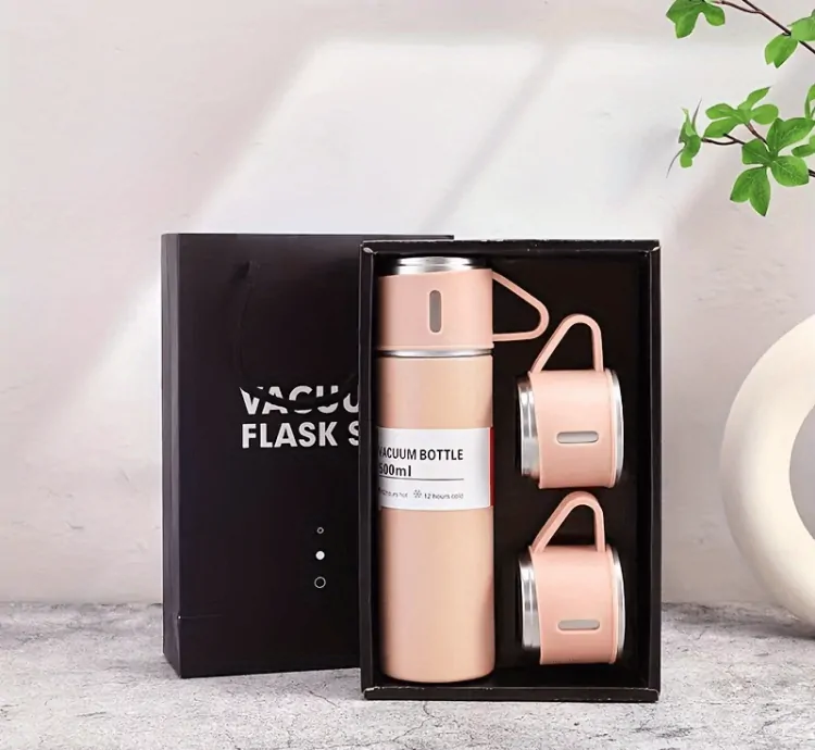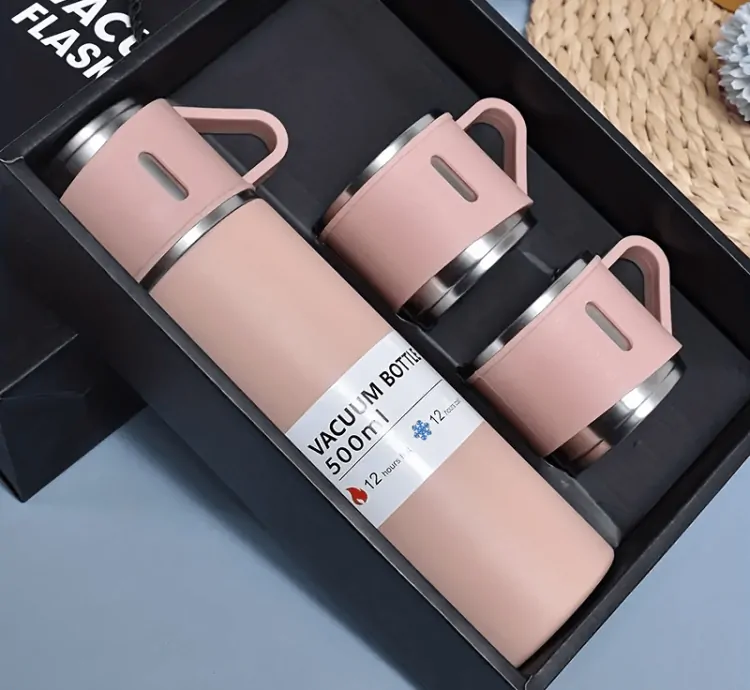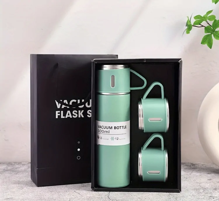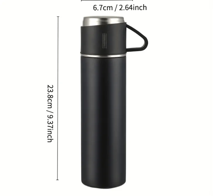 1 set Thermal Mug 500ml/16.9oz, Stainless Steel Vacuum Insulated Bottle with Cups for Coffee Hot Drink and Cold Drink, Water Thermos for School Supplies.