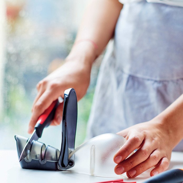 The Tupperware Knife Sharpener is the perfect tool to keep your knives sharp. Its ergonomic and durable design allows for quick and effective sharpening, ensuring your knives are always in top condition. It helps extend the lifespan of your frequently used knives, making your cutting tasks easier. With its simple and safe usage, this knife sharpener is a must-have tool in every kitchen.