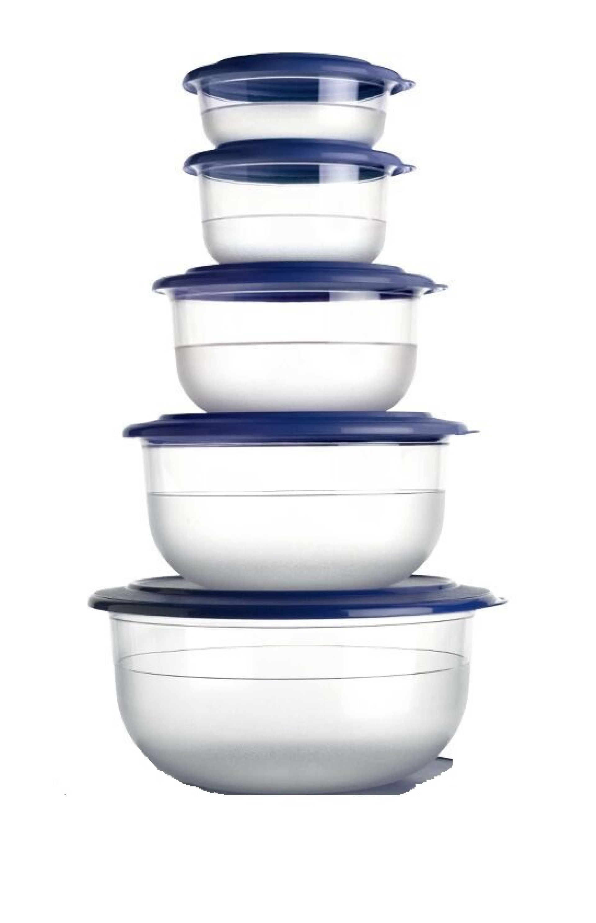 Set of 5 in 5 different sizes: 1 piece 3.5 liters, 1 piece 2.1 liters, 1 piece 1.1 liters, 1 piece 450ml, 1 piece 275 ml