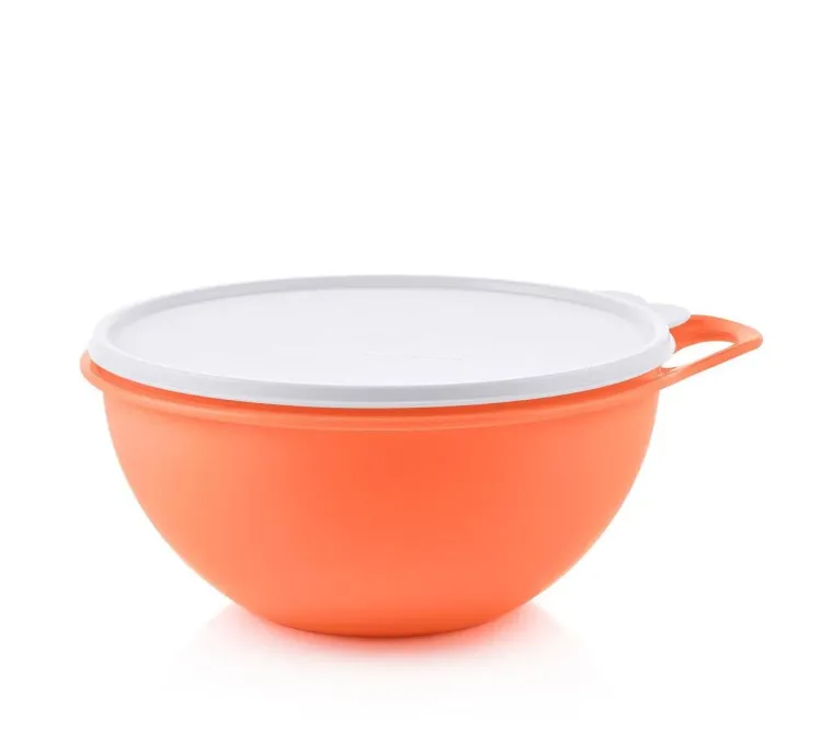 The Tupperware Mixer Food Prep & Mixing Bowl 1.3L is designed to make mixing, whisking, and food preparation effortless. Its non-slip base keeps it stable, while the ergonomic handle ensures a comfortable grip. Lightweight yet durable, it is perfect for preparing dough, sauces, creams, and more. The wide opening makes it easy to add and mix ingredients. With its vibrant orange color, it adds a lively touch to any kitchen.