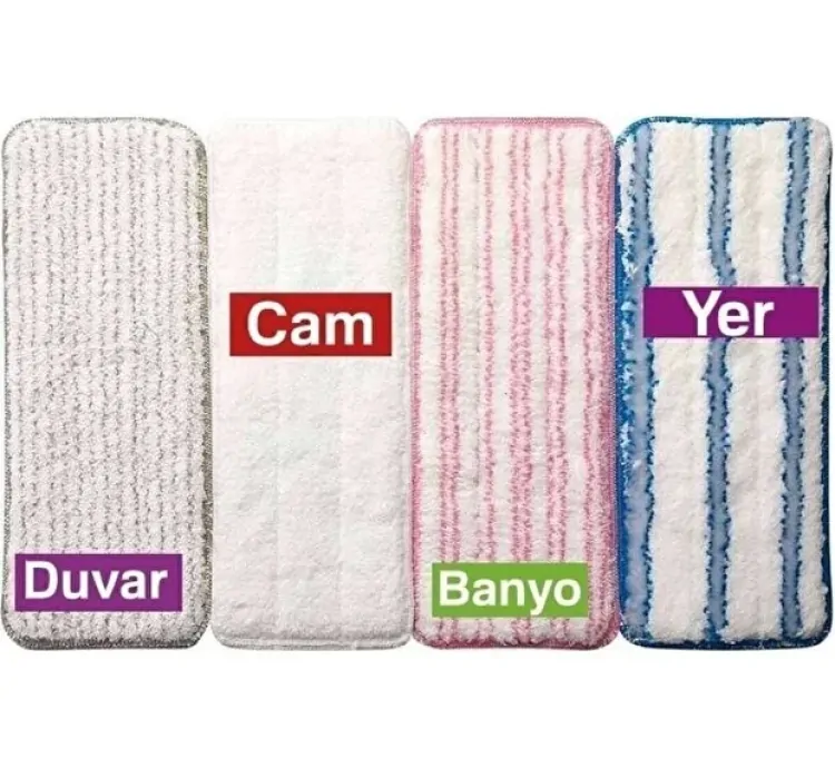 1 Paket İçerisinde 4 adet Farklı Renklerde Mop Yedek Bezi Vardır