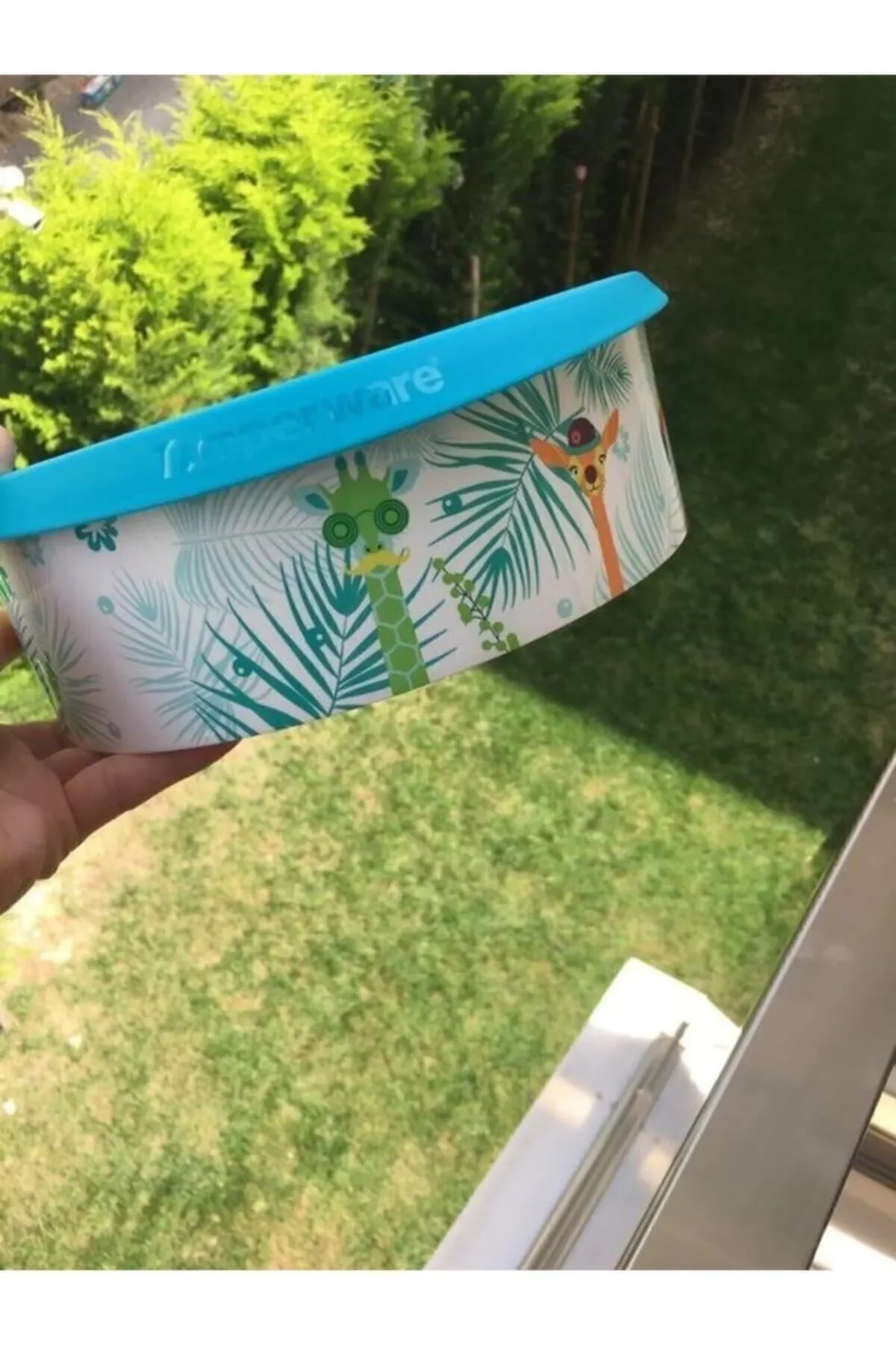 Tupperware Flamingo Desenli Tek Parmak Kurabiye Kutusu Turkuaz 2.5lt Sıkı Kapak Saklama Kabı