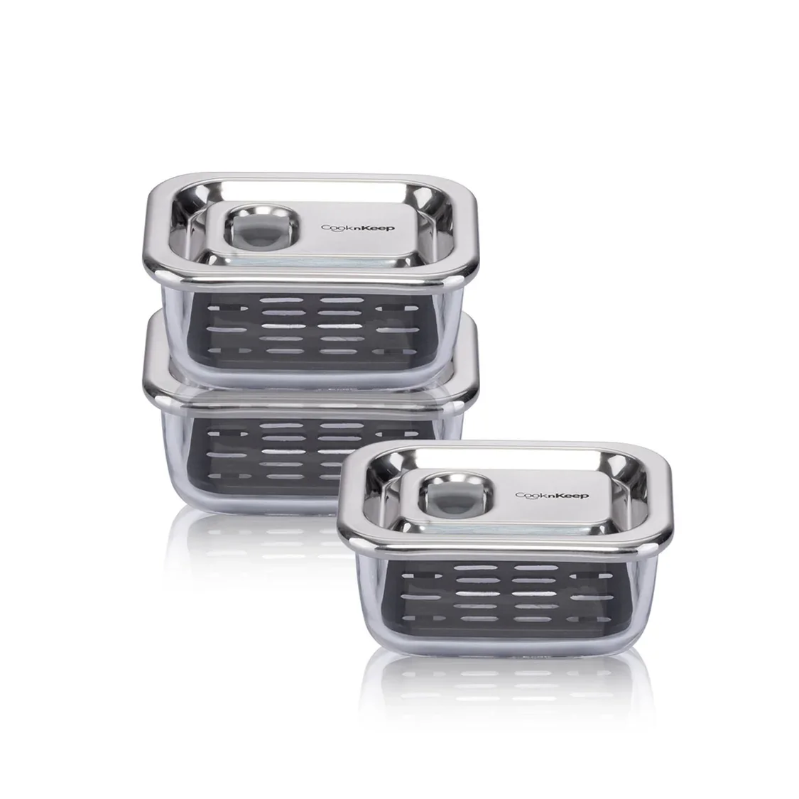 Vakumlu Cam Saklama Kabı Küçük Boy 3’lü Set – Taze Saklama, Sızdırmaz Kapak, Sağlıklı Cam